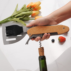 Make the most out of grilling with this 5-in-1 stainless steel and wood BBQ tool set.