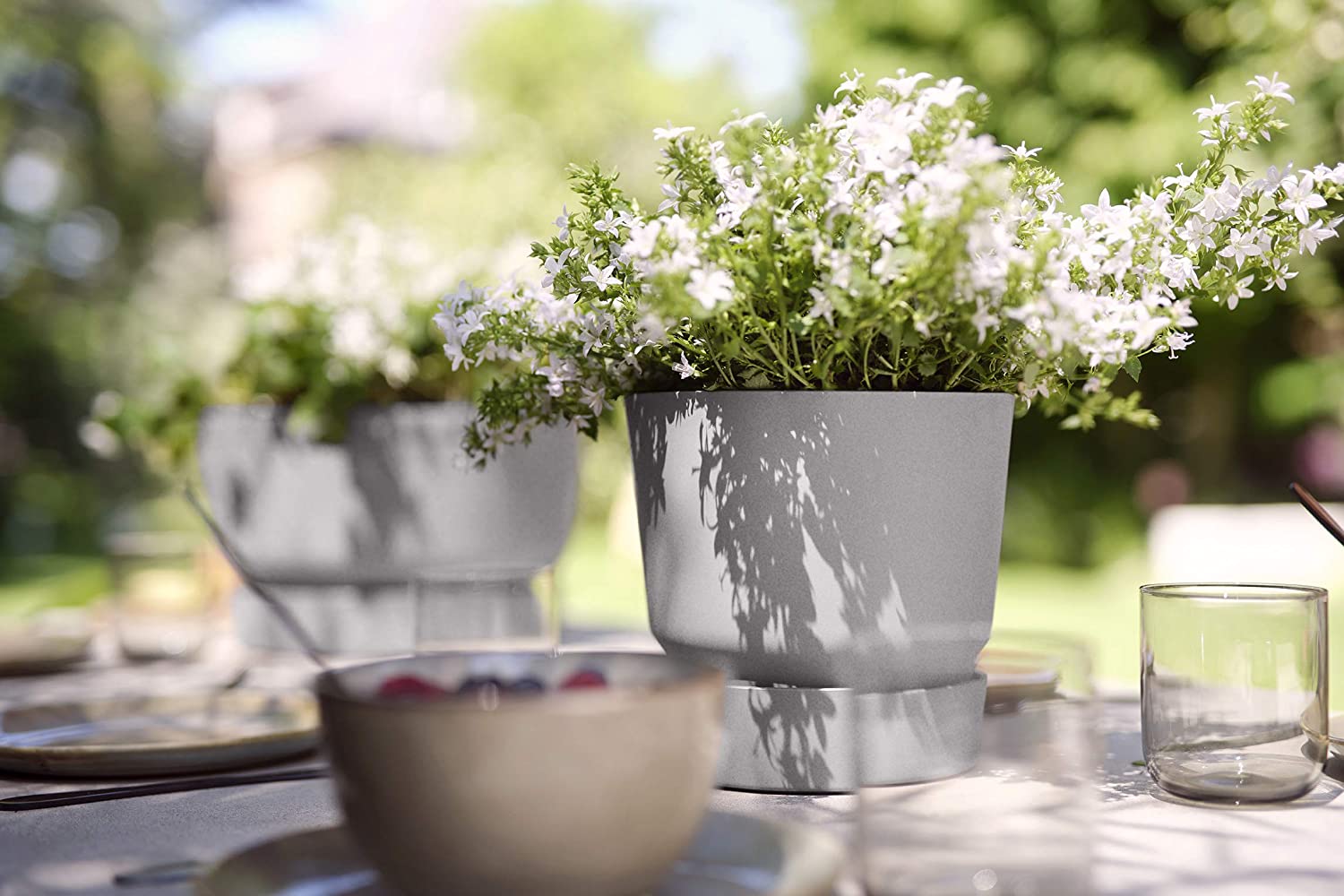 Combines a modern, sophisticated design trend with a clever, practical water solution for everyday plant care.